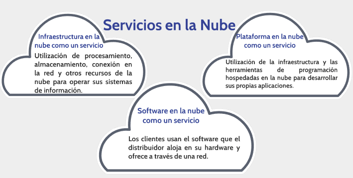 Es aquella en donde la empresa e individuos obtienen procesamientos computacionales, almacenamientos, software y otros servicios como una reserva de recursos virtualizados a través de una red.